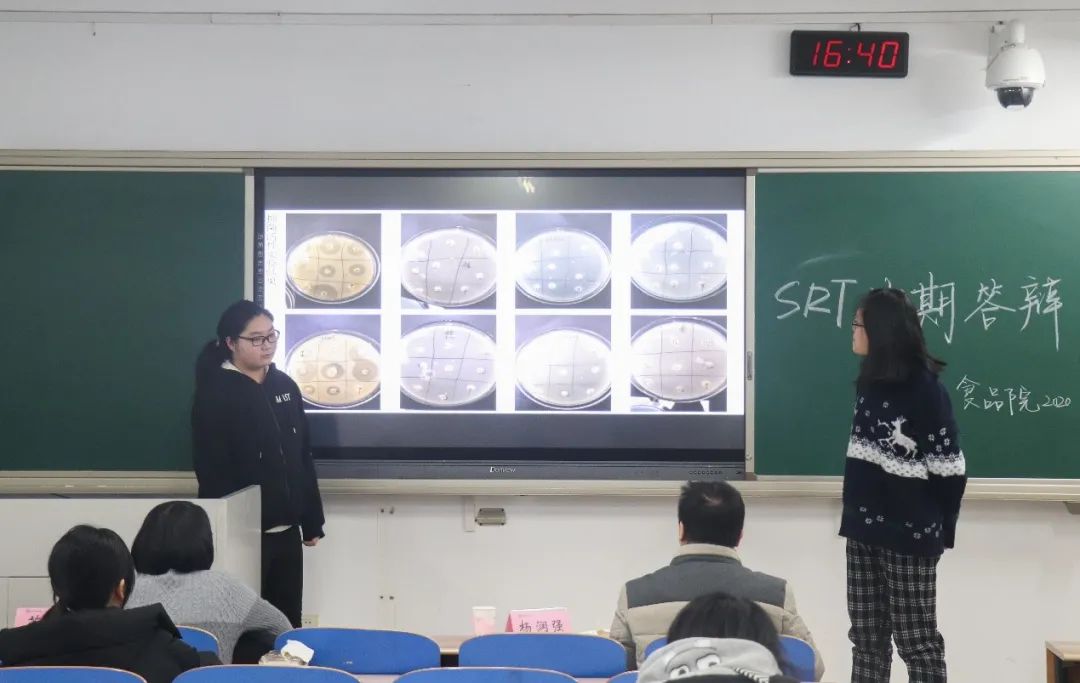 汇报过程中,各SRT小组分别汇报了本小组的研究背景、进展情况、阶段性成果、存在的问题以及今后的研究计划。项目涉及食品多方面创新优化以及新型食品的研发等多方面内容。