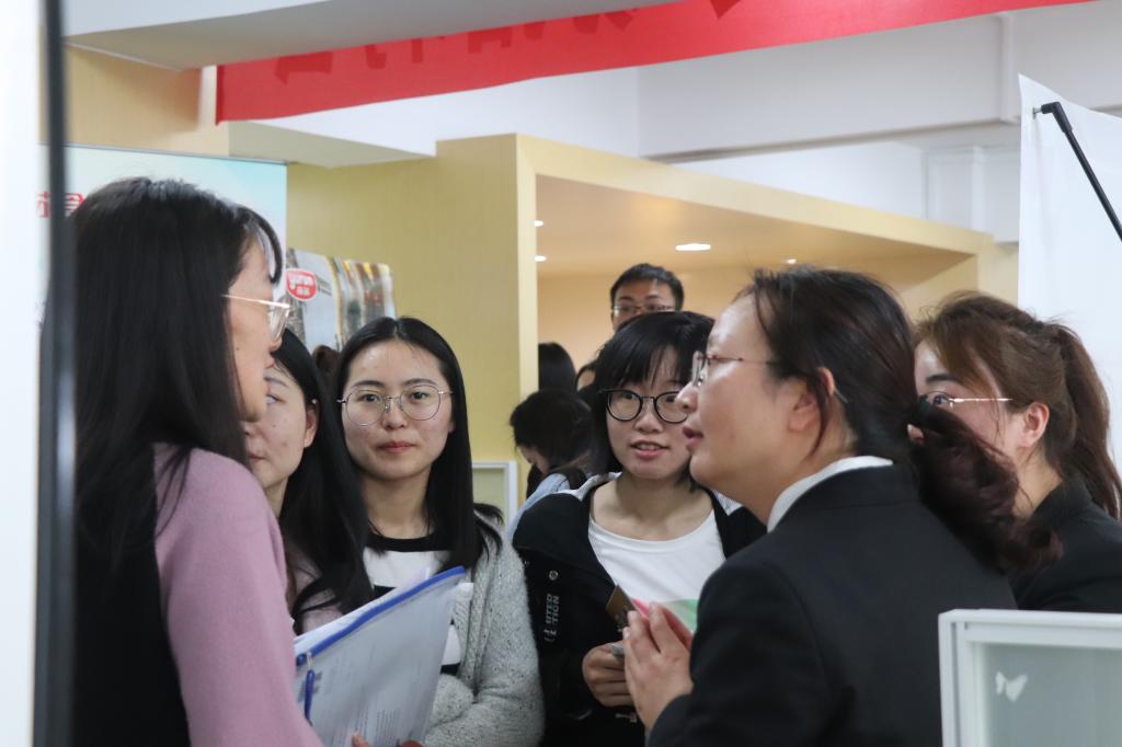 、南京师范大学、南京工业大学、南京林业大学等高校的400多名毕业生前来应聘。在招聘面试现场,同学们就工作岗位基本情况、薪资待遇、公司发展情况等方面与用人单位进行了沟通交流,并向心仪企业投递了简历。