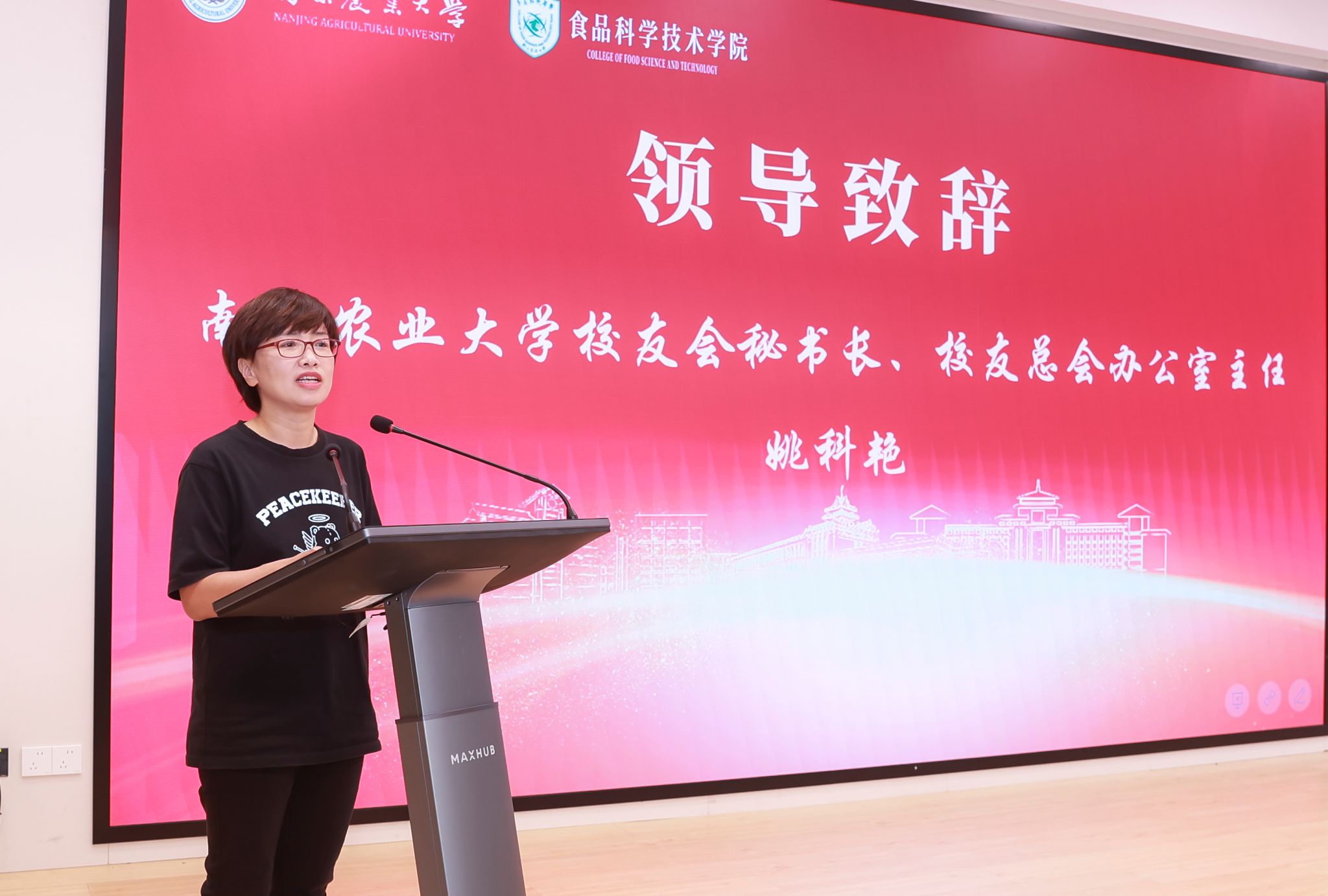 校友会秘书长、校友总会办公室主任姚科艳致欢迎辞。她向与会嘉宾的到来表示热烈欢迎,对食品行业校友分会的工作表示了肯定。她从校友分会工作、食品行业发展等方面展开,指出偷情