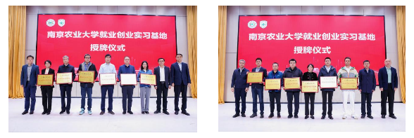为聚力构建多元化、高质量的实践教学平台,学院与温氏食品集团股份有限公司、南京黄教授食品科技有限公司、南京栏井实验室科技有限公司、南京乾广机械科技有限公司等11家单位达成合作,共建优质就业创业实习基地,并现场举行授牌仪式。