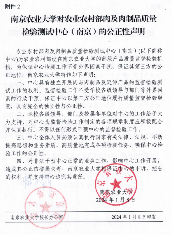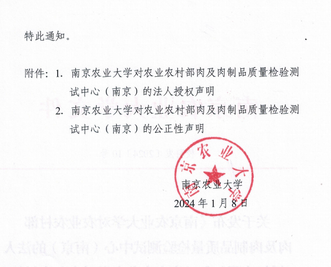 农业农村部肉及肉制品质量检验测试中心(南京)(以下简称“中心”)是农业农村部部级产品质量检验测试中心,中心根据农业农村部(农质发〔2013〕1号)文组建。中心于2015年3月通过国家认监委农业组的国家计量认证、食品检验机构和农业部检验机构考核、审查认可的首次评审,获得资质认定计量认证证书、食品检验机构资质认定证书、农产品质量安全检测机构考核合格证书、农业农村部审查认可证书。中心主管部门是偷情