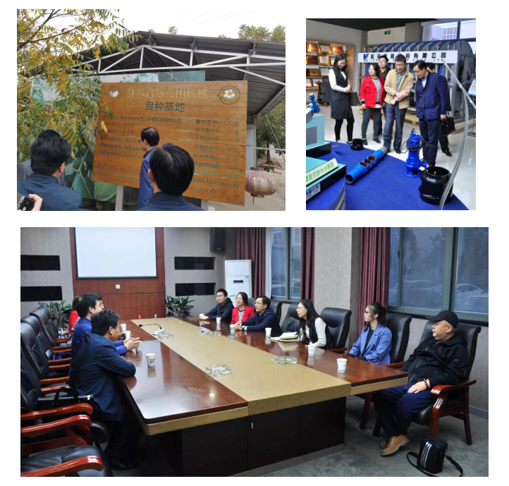 最后,食安教工党支部一行分别来到了六合薄壳山核桃良种繁育基地和蓝深集团调研对接。双方就核桃加工与质量控制,智慧农业、田间污染防控等方面的合作事宜作了进一步沟通对接。