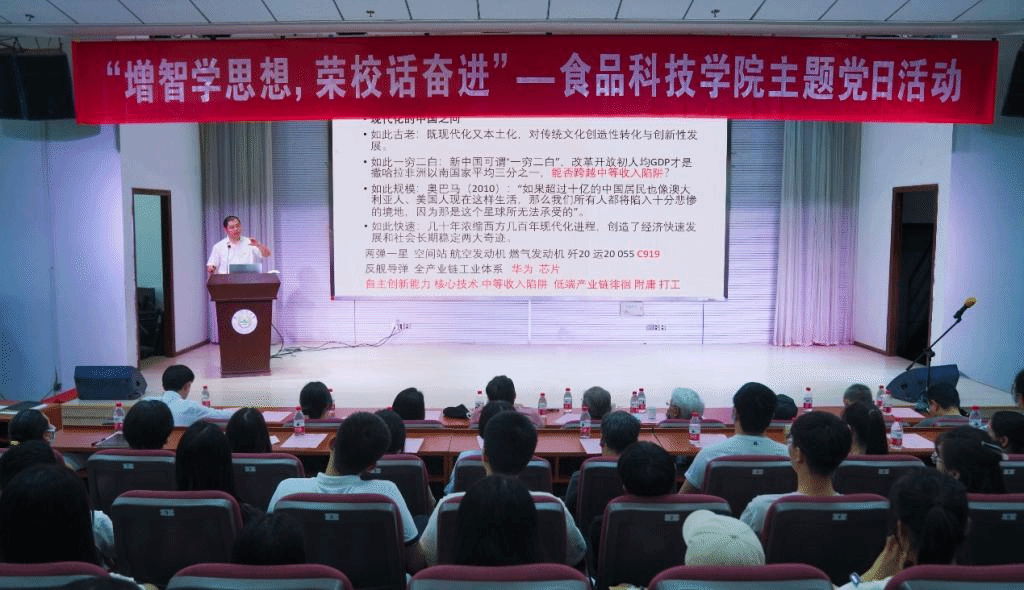 党日活动的第一部分由孙健以“中国式现代化的内涵、挑战及对策”为主题为在座师生党员开展了一场思想深刻的主题党课,结合党的二十大报告和中国式现代化的本质要求,根据中国本土国情分析了中国现代化进程面临的种种挑战,并从多个方面对中国式现代化进行了系统梳理和全方位解读,为全体师生党员从中国式现代化的内涵及意义,中国式现代化面临的挑战及对策两大部分进行展开讲授。